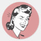 Pegatina Redonda Ilustración retro de mujer guiñando el ojo sobre r