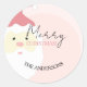 Pegatina Redonda Ilustracion Santa Cute Rosa