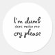 Pegatina Redonda Im Dumb Dont Make Me Cry Please