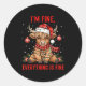 Pegatina Redonda Im Fine Everything Is Fine Funny Christmas Highlan
