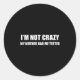Pegatina Redonda I'm Not Crazy My Mother Had Me Tested Quote