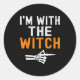 Pegatina Redonda I'm With The Witch Funny Skeleton Halloween Matchi