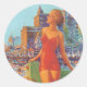 Pegatina Redonda Imagen de Ciudad Atlántica de época