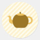 Pegatina Redonda Imagen de una tetera marrón en franjas beiges.