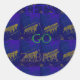 Pegatina Redonda Impresión abstracta azul francés "Let's Go Zebra"