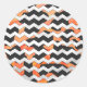 Pegatina Redonda Impresión de Chevron de vaca negro y Naranja