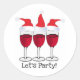PEGATINA REDONDA IMPRIMIR VINO ROJO FIESTA Y GORRAS NAVIDADES