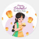 Pegatina Redonda Indian Girl with Floating Lanterns Happy Diwali