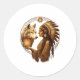 Pegatina Redonda Indian Native American Woman With White Wolf Vinta