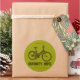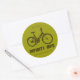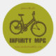 Decal verde de 3" (redondo) con gráfico de bicicleta marrón vintage. Leyenda: "Infinity MPG" www.carolinatriathlon.com, Greenville, SC