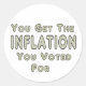 Obtienes la inflación por la que has votado es un comentario sobre el gobierno y la política financiera y el efecto en la gente que bien puede haber votado por el estado actual de las cosas. Ver también Bidenflation.