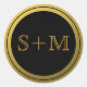 Pegatina Redonda Inicial De Monograma Negro Y Oro 2