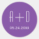 Pegatina Redonda iniciales blancas, boda púrpura simple y elegante