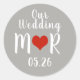 Pegatina Redonda iniciales con corazón de amor rojo, boda gris