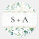 Pegatina Redonda Iniciales de la Pareja de Verdor Geométrico