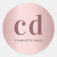 Pegatina Redonda Iniciales de monograma rosa sonrojado rosa polvori