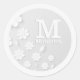 Pegatina Redonda Iniciales de nombre grabado en relieve floral blan