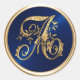 Pegatina Redonda Iniciales doradas Monograma Inicial Azul Marino