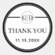 Pegatina Redonda iniciales en blanco y negro Gracias boda