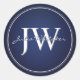 Pegatina Redonda Iniciales Personalizadas Azul Marino y Plata