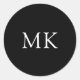 Pegatina Redonda Iniciales personalizadas de monograma negro modern