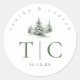 Pegatina Redonda Iniciales rusticas de la boda invernal Green ID104