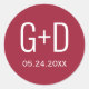 Pegatina Redonda iniciales sencillas y elegantes boda rojo burdeos