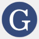 Pegatina Redonda Initial Letter Monogram Blue White Plain Simple