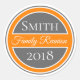Insignia de Reunión de Familia redonda en naranja y gris con contornos en blanco y gris. Un gran regalo para tu reunión que se puede personalizar con tu propia información.