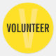 Insignia de voluntario amarillo con título en negrita blanca sans serif fuente con monograma amarillo claro sobre fondo amarillo.
