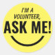 Pegatina Redonda Insignia del voluntario amarillo Pregúntame