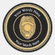 Este artículo está decorado con una insignia de oficial de policía que se puede personalizar de dos maneras con una elección de palabras arriba y abajo que permite personalizarlo con el nombre de una ciudad, departamento de policía, nombre, etc.