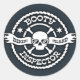 Divertido emblema de agente de personalizados piratas: "Inspector booty de la isla de Bikini". Calavera y cruces en gafas de sol, con banderas andrajosas y bordes de cuerda. Gráfica limpia, de estilo esténcil, con camisetas, tarjetas, regalos.