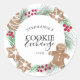 Este Pegatina de Watercolor Navidades Cookie Exchange está decorado con galletas acuáticas, follaje y bayas. Personalizable fácil. Acuarela original © Michele Davies.