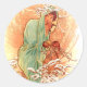 Pegatina Redonda Invierno - Alphonse Mucha Art Nouveau