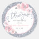 Pegatina Redonda Invierno Baby Shower Pink & Silver Snowflake Favor