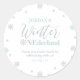 Este bonito pegatina fiesta de 1° cumpleaños presenta copos de nieve de menta y plata y tipografía elegante "Winter ONEderland". Perfecto para una fiesta temática de invierno. En mi tienda BaraBomDesign hay disponibles invitaciones y suministros para fiestas coincidentes.