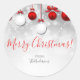 Pegatina Redonda Invierno de vacaciones Red White Sparkle Ornaments