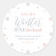 Este lindo pegatina fiesta de 1° cumpleaños presenta copos de nieve rosados y plateados y tipografía elegante "Winter ONEderland". Perfecto para una fiesta temática de invierno. En mi tienda BaraBomDesign hay disponibles invitaciones y suministros para fiestas coincidentes.