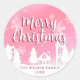 Pegatina Redonda Invierno rosa Wonderland Feliz Navidad Classic R