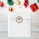 Sella tus invitaciones de vacaciones con un toque festivo. Esta calcomanía de fiesta de Navidad de bastón de caramelo presenta rayas diagonales rojas y verdes sobre un fondo blanco crujiente para combinar con tu invitación clásica de fiesta de Navidad. El saludo alegre y la personalización para el nombre del anfitrión y el año lo convierten en el toque final perfecto para sobres, envolturas de regalos y favores de fiesta.