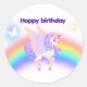 Pegatina Redonda Invitación de cumpleaños con sticker de arcoíris d