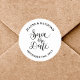 Presentamos nuestro "Pegatina de redondeo clásico de la Invitación Save The Date Boda personalizado". Estos elegantes pegatinas le dan un toque personalizado a sus invitaciones bodas, con un diseño atemporal perfecto para cualquier tema. Ideal para sellar sobres o mejorar tu guardado de tarjetas de fecha, cada pegatina puede ser personalizado con tus nombres y fecha de boda. La forma redonda clásica y los detalles a medida hacen que su invitación sea única para usted, lo que garantiza un comienzo elegante y memorable a su celebración boda.