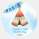 Pegatina Redonda Invitación salvaje de un niño de primer cumpleaños