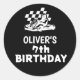 Pegatina Redonda Ir a karting, ir al auto de carreras de cumpleaños