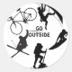 Dale una cachetada a este pegatina en tu casco, bicicleta, botas de esquí, botella de agua, auto, y en cualquier otro lugar que te anime a pasar tiempo fuera.