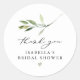 Esta ducha de novia gracias pegatina cuenta con una hoja de color verde y letra manuscrita. Edite fácilmente *most* frases para satisfacer las necesidades de tu evento. Este pegatina es el lugar perfecto para su elegante vegetación o su elegante ducha de novia o evento.