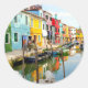 Pegatina Redonda Isla Burano cerca de Venecia, casas arcoiris en It