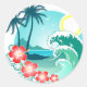 Un bonito diseño de isla hawaiana con cocoteros, olas tipo tsunami, flores de hibisco, aves marinas, sol y una isla al fondo. Busca a Makanahele para ver mis otros diseños.