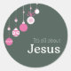 Minimalist Christian Christmas sticker featuring festive pink ornaments on a deep green background with the message “It’s all about Jesus.” Perfect for holiday cards, gifts, journals, planners, and faith-inspired décor.